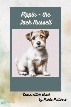 The cross stitch chart is a portrait of a seated Jack Russell puppy with white, tan and black markings. The dog is the focus of the image with no clut...Savoir plus