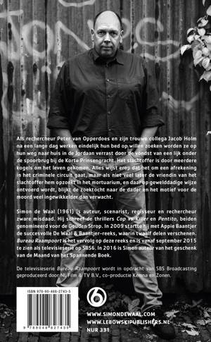 Simon de Waal (1961) is auteur, scenarist, regisseur en rechercheur zware misdaad. Hij schreef de thrillers Cop vs Killer en Pentito, beiden genomineerd voor de Gouden Strop. In 2009 startte hij met Appie Baantjer de succesvolle De Waal & Baantjer-reeks, waarin twaalf delen verschenen. Bureau Raampoort is het vervolg op deze reeks en is vanaf september 2015 te zien als televisieserie op SBS6. In 2016 is Simon auteur van het geschenk van de Maand van het Spannende Boek.